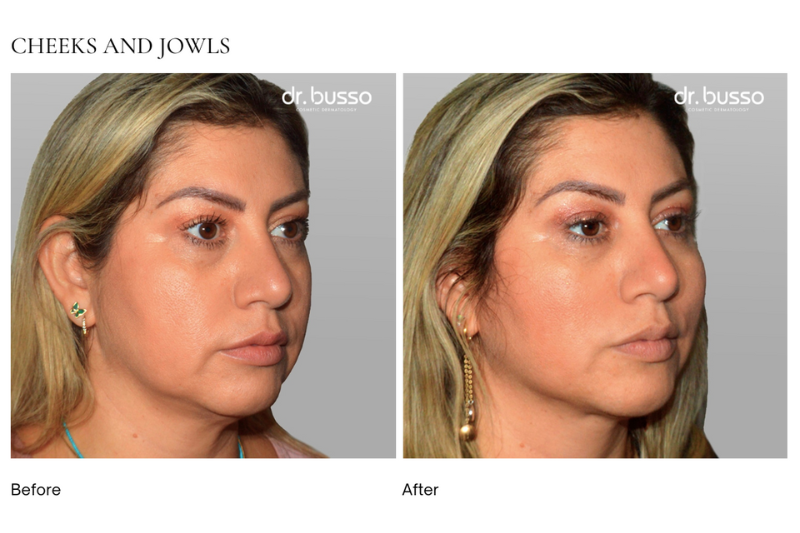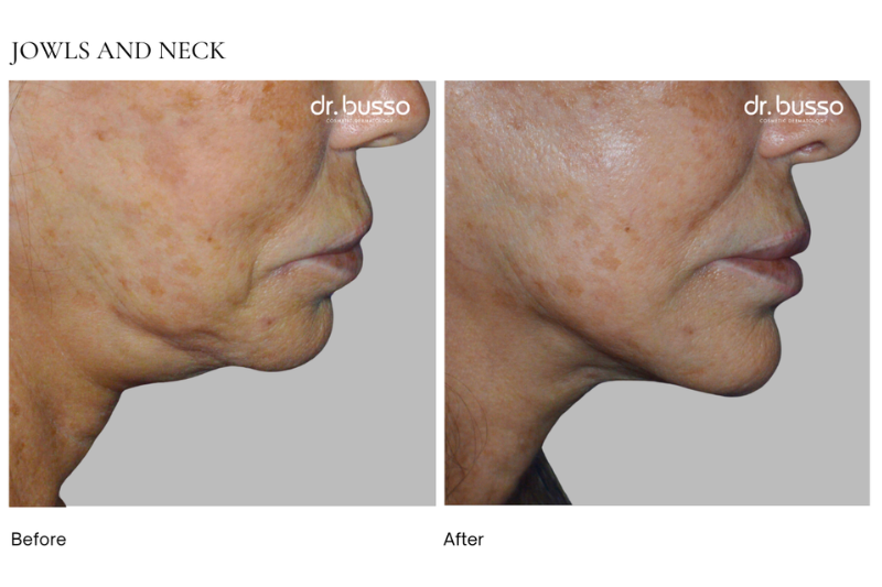 This patient was concerned with the prominence of her jowls and neck skin laxity. By lifting the facial superficial fat pads through a BussoLyft®, her jowls and neck skin …
